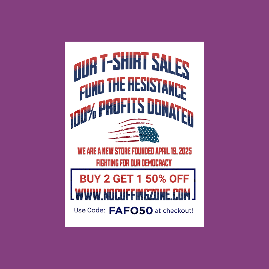 NO CUFFING ZONE SELLS UNIQUELY THEMED BELLA CANVAS 3001 T-SHIRTS. WE ARE FAMILY AND THEY ALSO DONATE 100% OF THEIR PROFITS TO THE ACLU ANF DOCTORS WITHOUT BORDERS.
